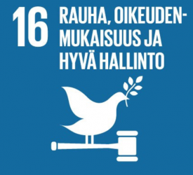 Tavoite 16 on rauha, oikeudenmukaisuus ja hyvä hallinto.